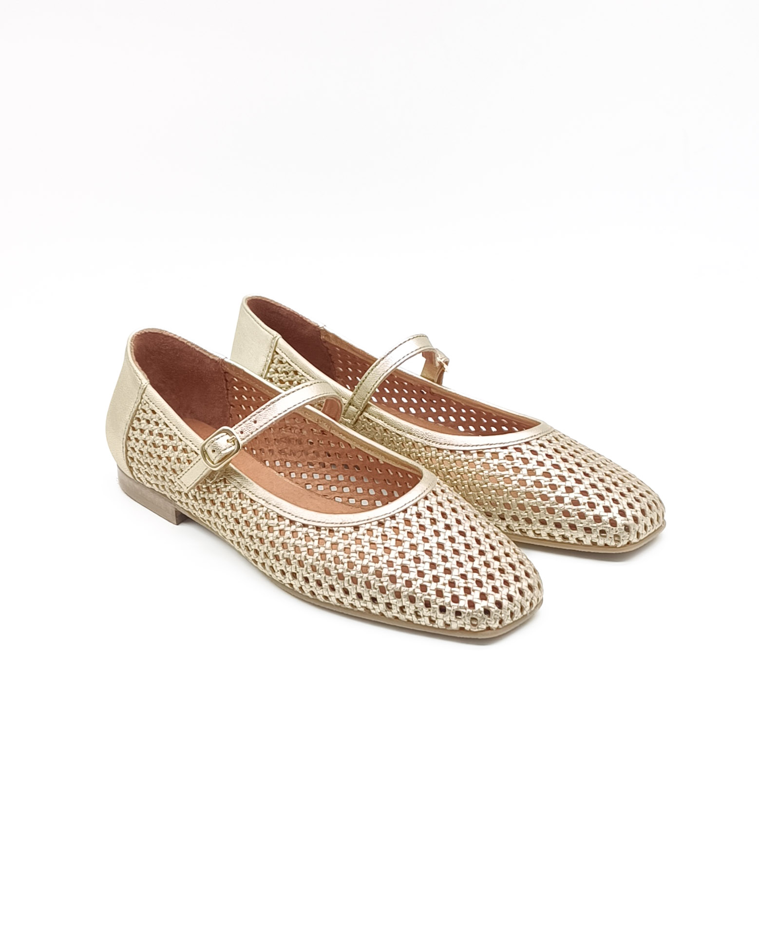 Este zapato de mujer tipo mercedita en piel calada oro es perfecto si buscas un modelo fresco, cómodo y muy fácil de combinar. El calado aporta transpirabilidad y ligereza, ideal para los días de más calor, y la tira con hebilla sujeta muy bien el pie.