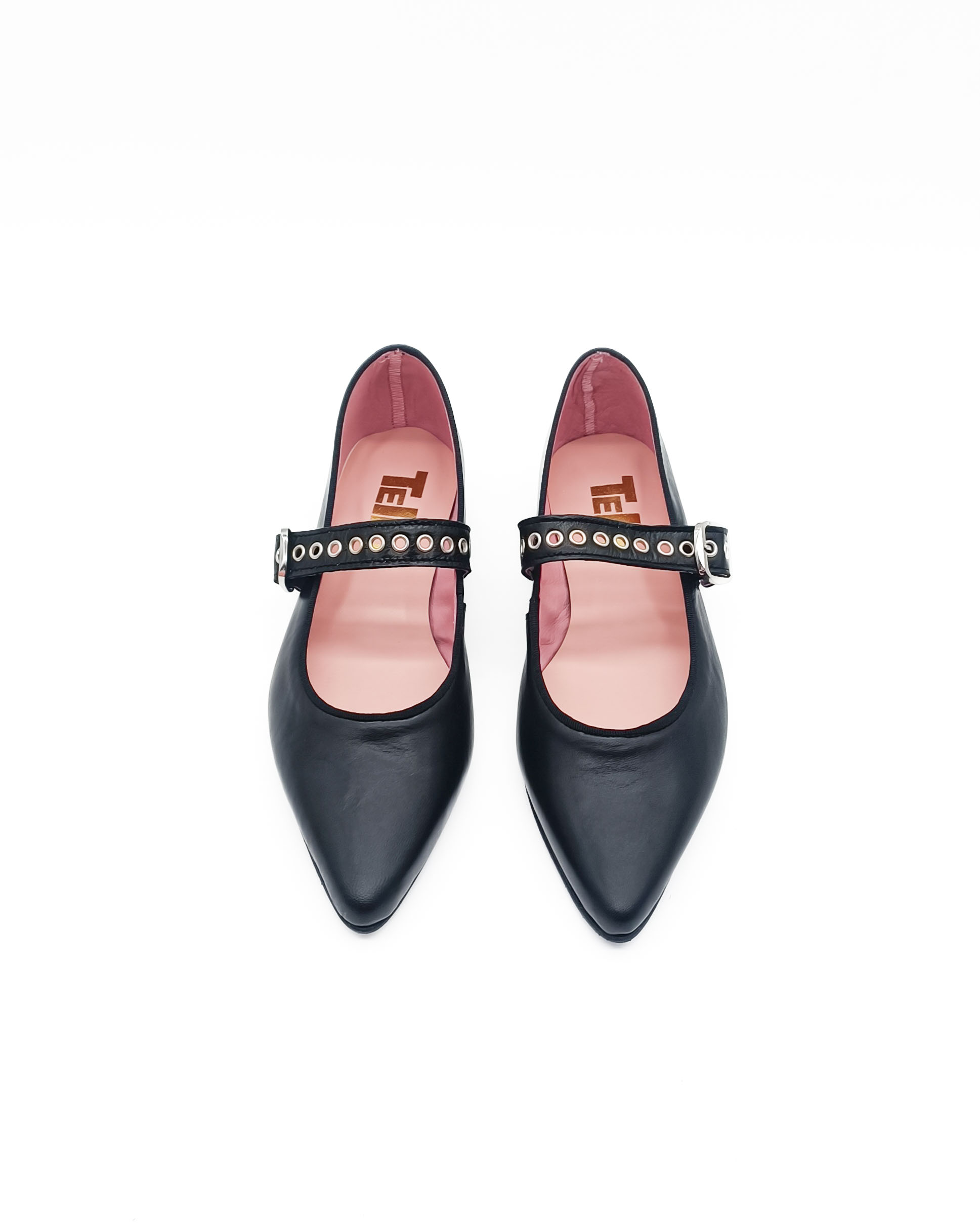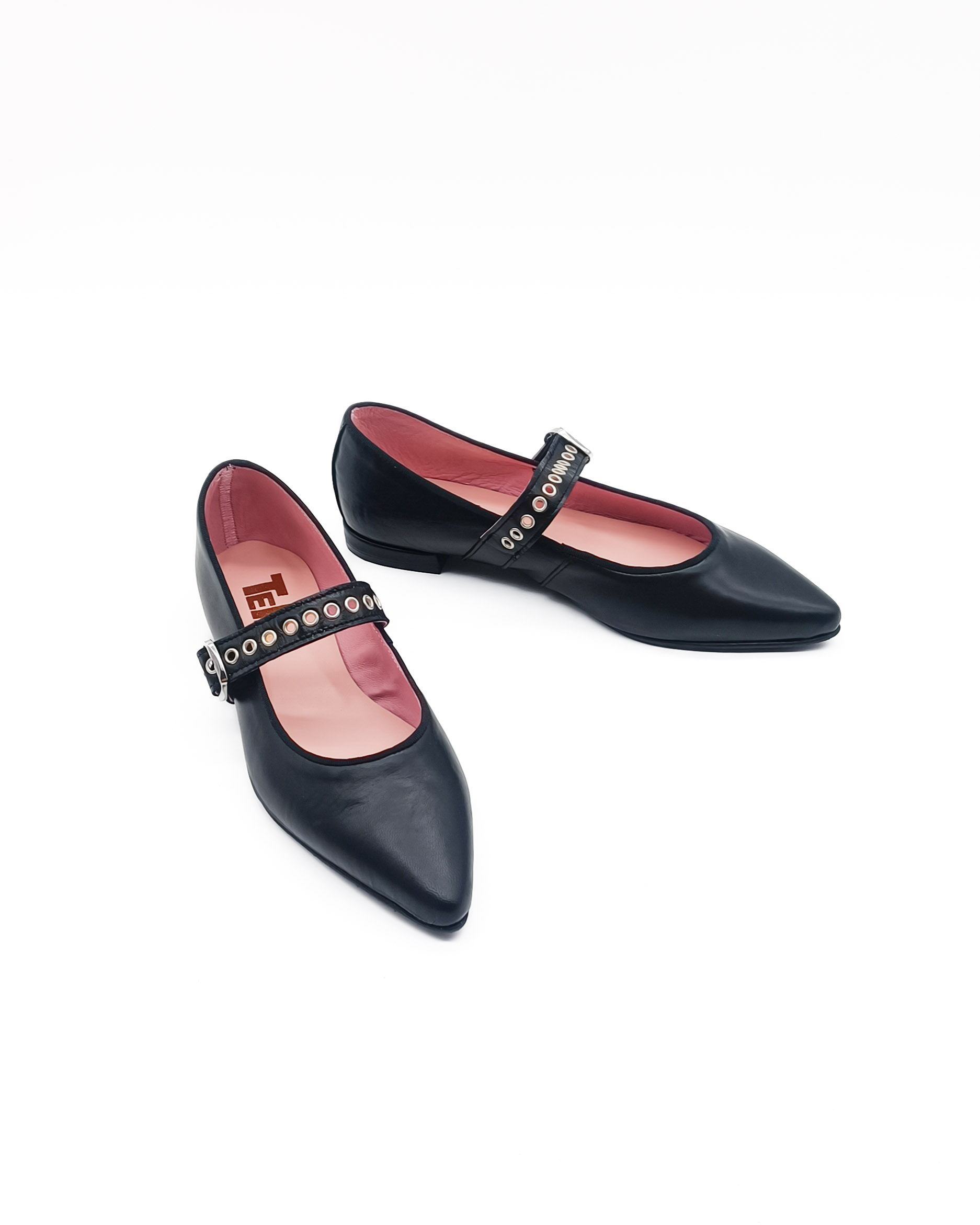 Bailarinas de piel en horma de punta con tira argollada al empeine. ¿Qué podemos decir de este modelo? Estiloso y cómodo. Elegante y atemporal.