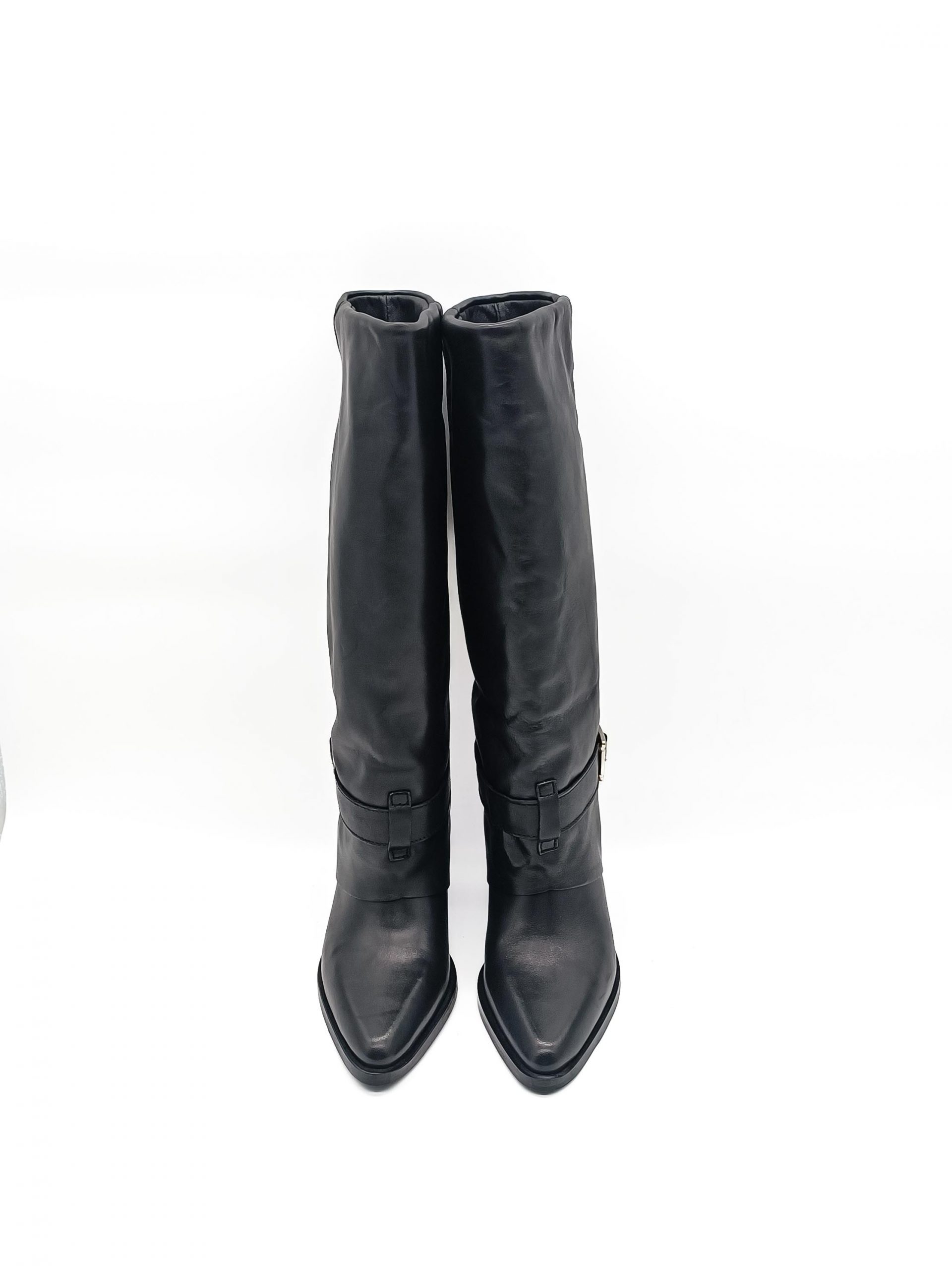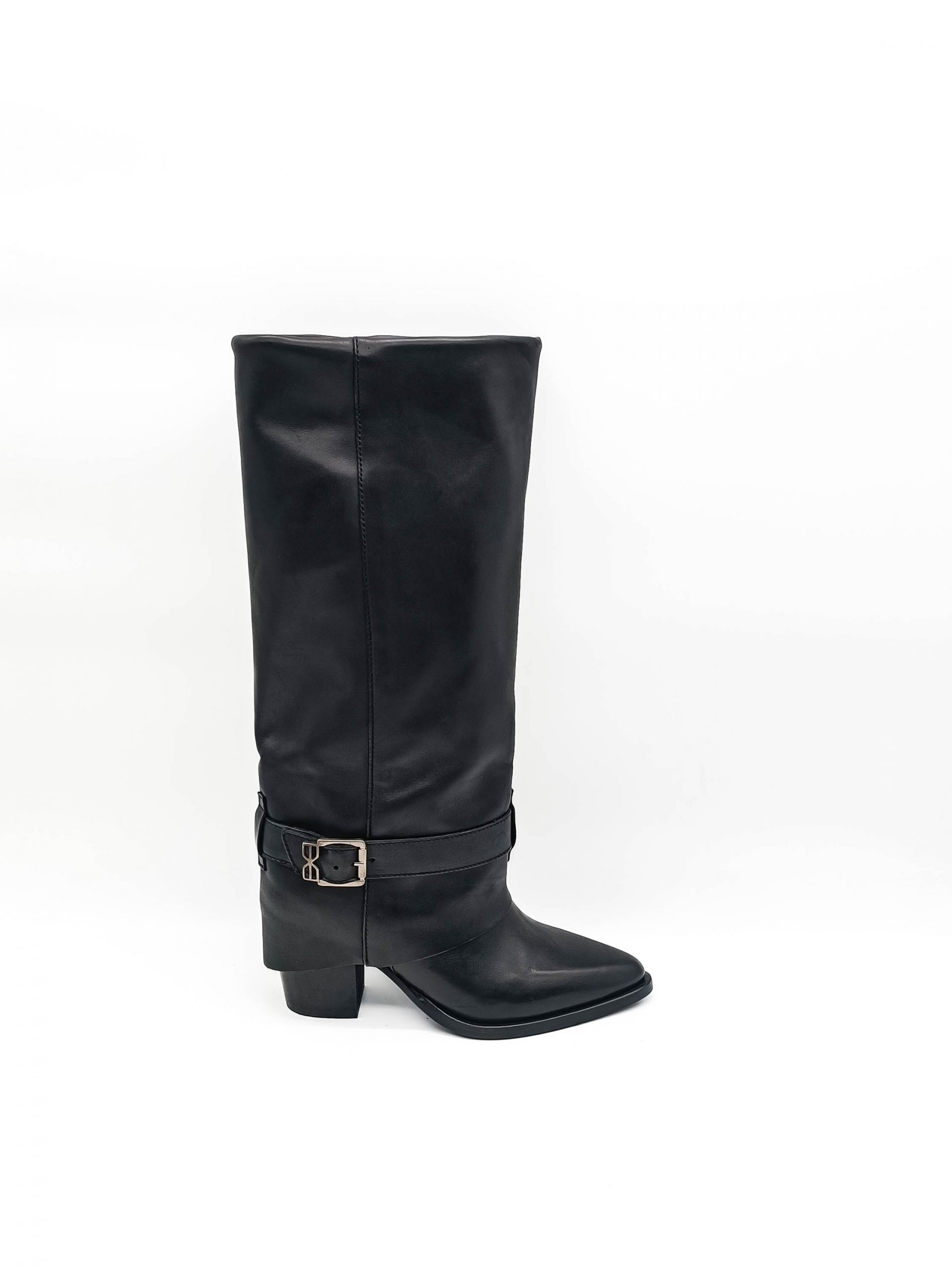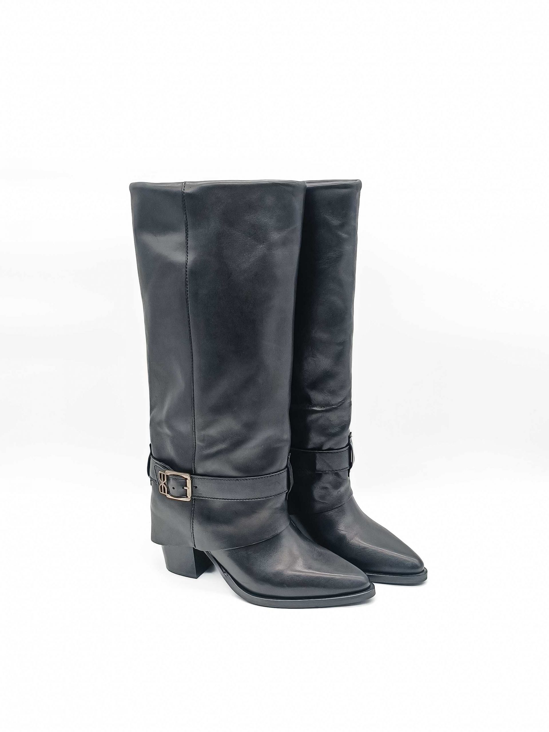 Botas altas de mujer en napa negras. Exquisitas botas altas estilo camperas con polaina y detalle de hebilla. Sin palabras.