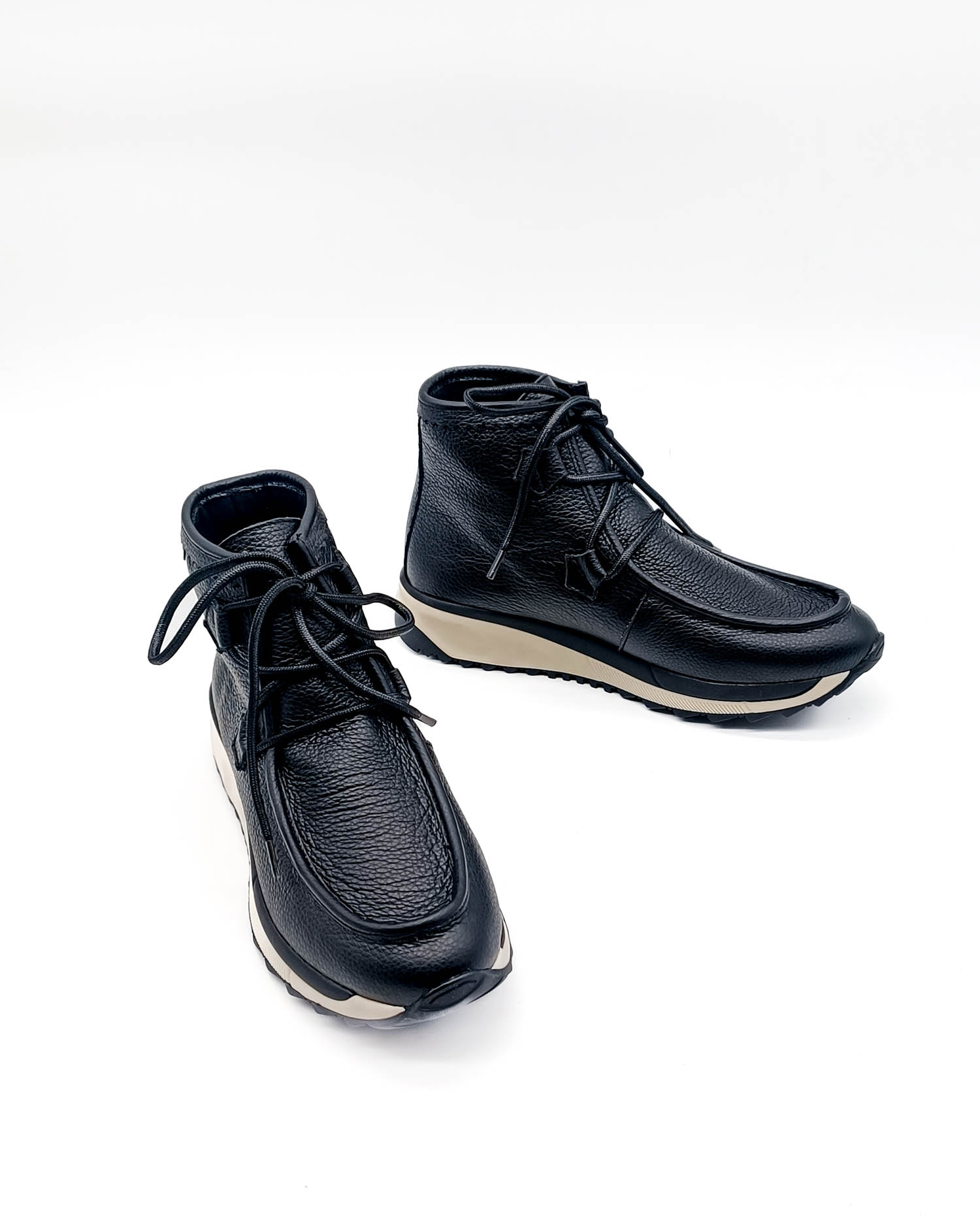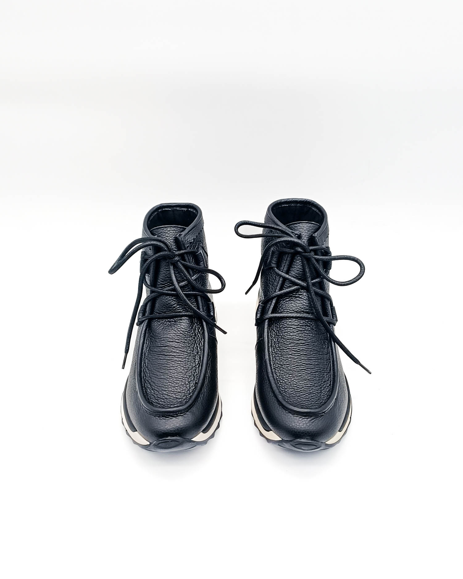 Botines de cordones con suela tipo deportiva. Unos botines que por su altura de caña quedan genial también con faldas cortas o largas. Ciñen perfecto al tobillo. Y aunque parezca un botín muy sport, lo cierto es que queda recogido y hace pie estrecho.