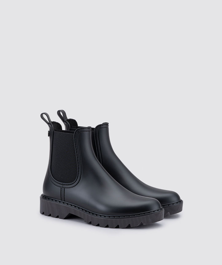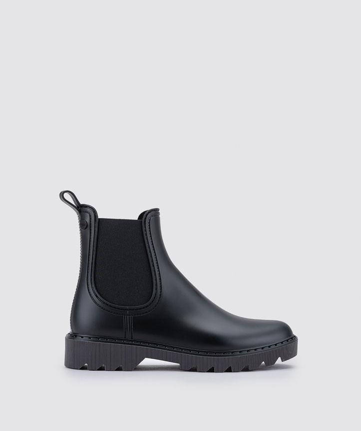 Botín de agua monocolor estilo track, acabado mate, textil en los laterales, plantilla confort extraíble y ranurado vertical en el piso.