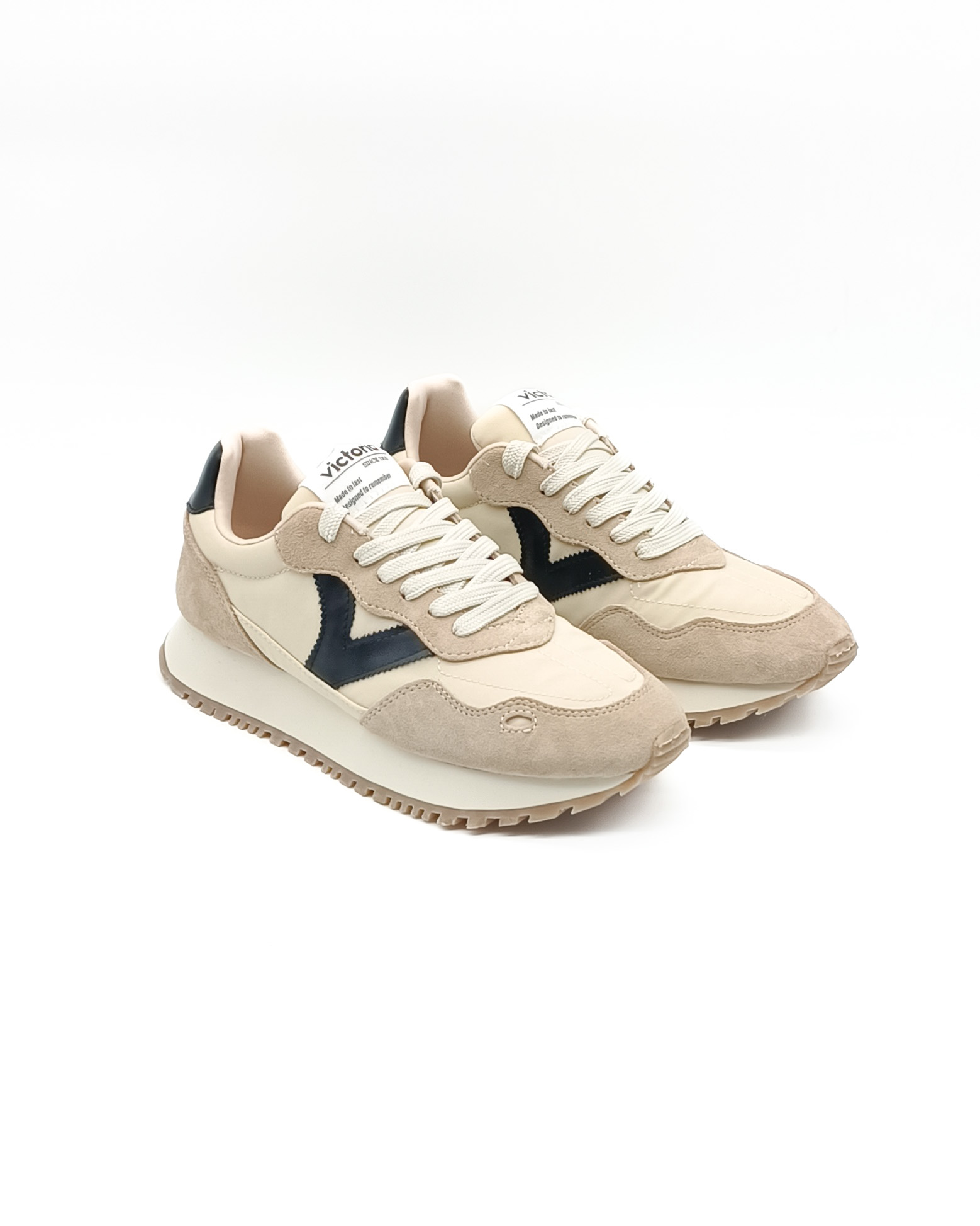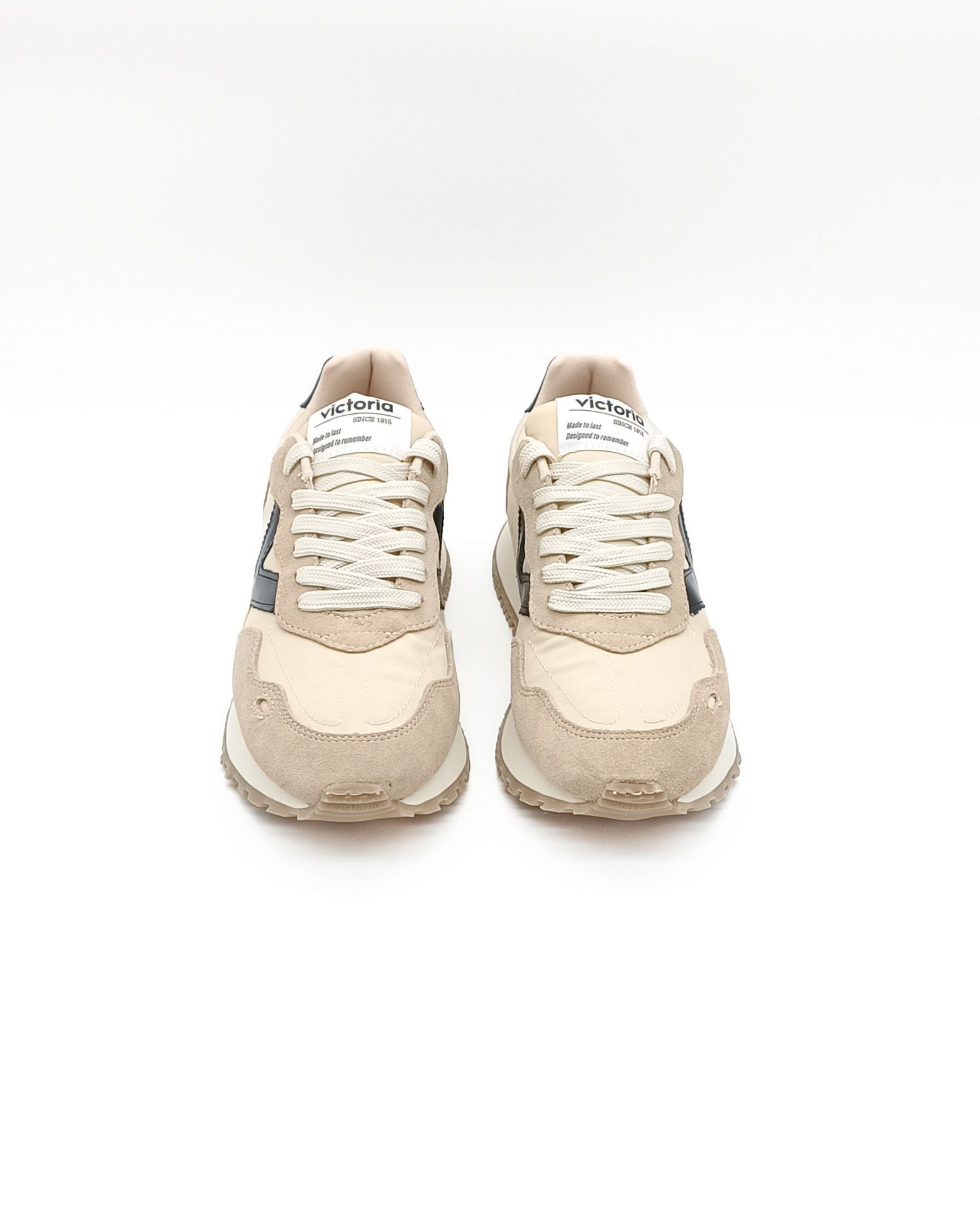 Este zapato deportivo de mujer en nylon y serraje es perfecto si buscas un calzado ligero, cómodo y muy fácil de combinar a diario. La mezcla de nylon transpirable y serraje aporta ligereza y flexibilidad, mientras que su diseño deportivo encaja igual de bien con vaqueros, pantalones o looks casual.