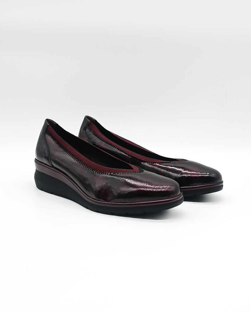 Este zapato salón de mujer es ideal si buscas comodidad real sin renunciar a un punto elegante. Su acabado en piel charol le da un aire arreglado pero muy ponible para el día a día, y la cuña ligera permite caminar con estabilidad y sin cansancio. Es uno de esos modelos que funcionan igual de bien para trabajar, para vestir más formal o para llevar muchas horas sin pensar en los pies.