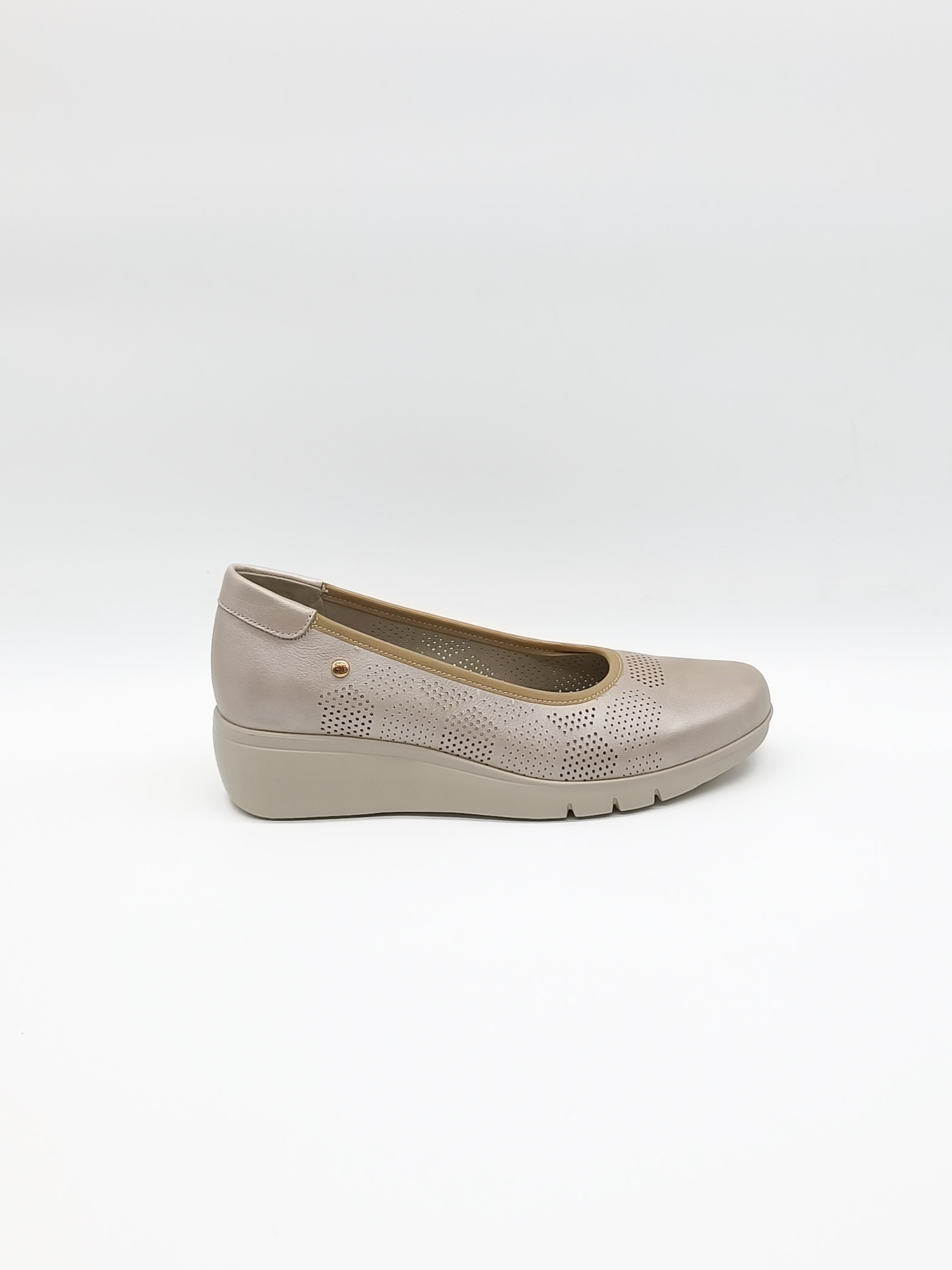 Este zapato de mujer cómodo en perforado es perfecto si buscas comodidad real y sin presión. Su diseño amplio y el calado le ayudan a evitar roces y aportan ventilación, ideal para pies delicados o con volumen. La cuña proporciona estabilidad y confort al caminar.