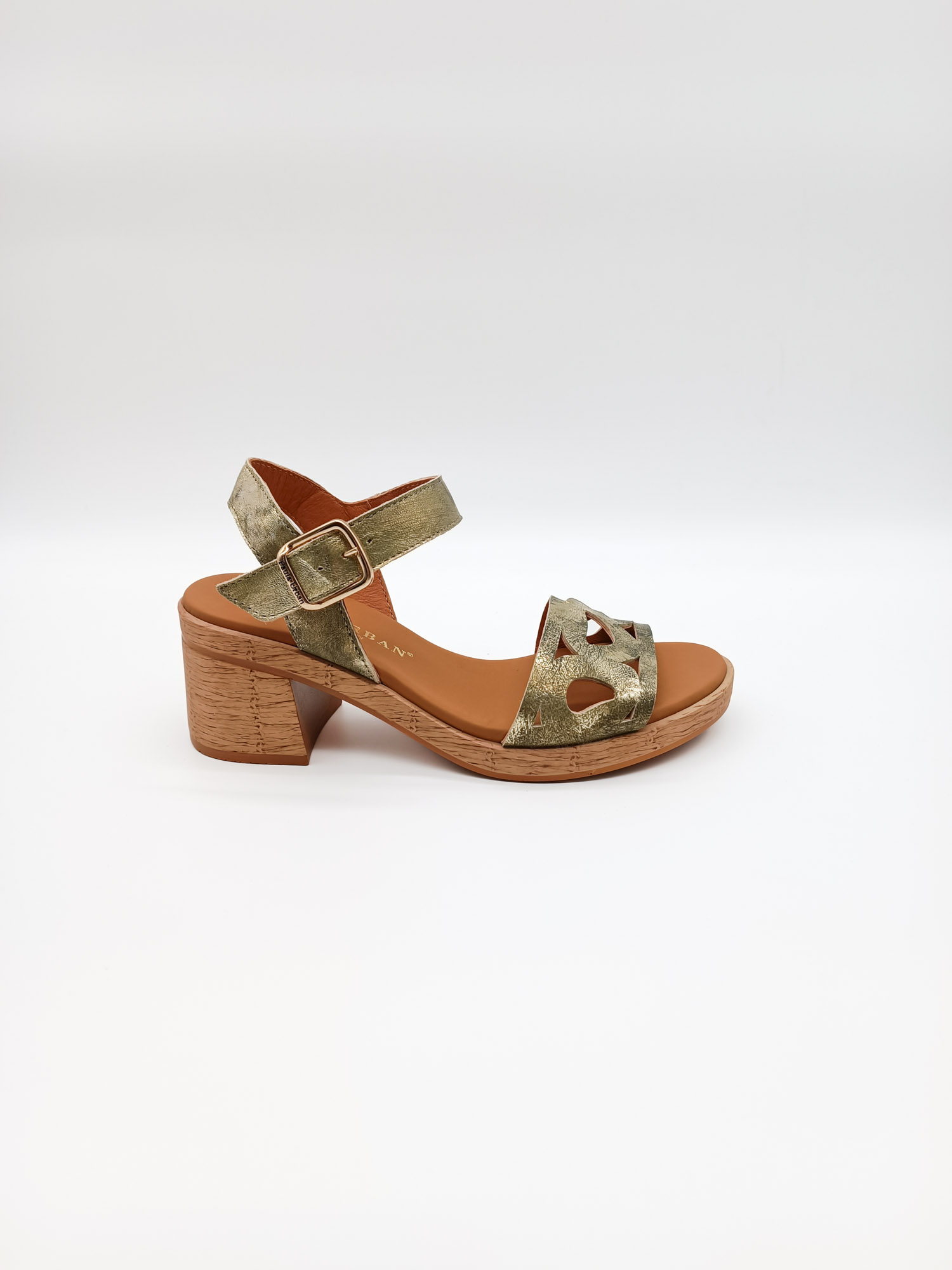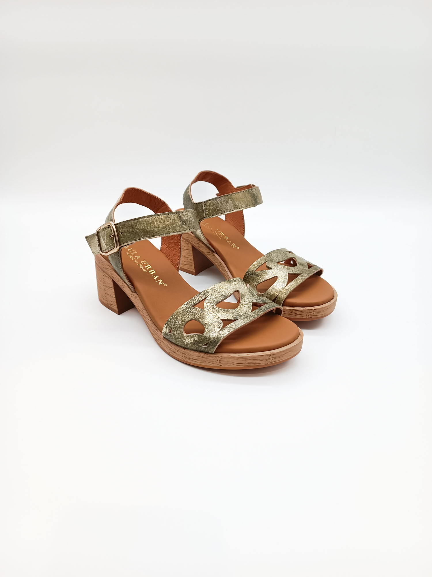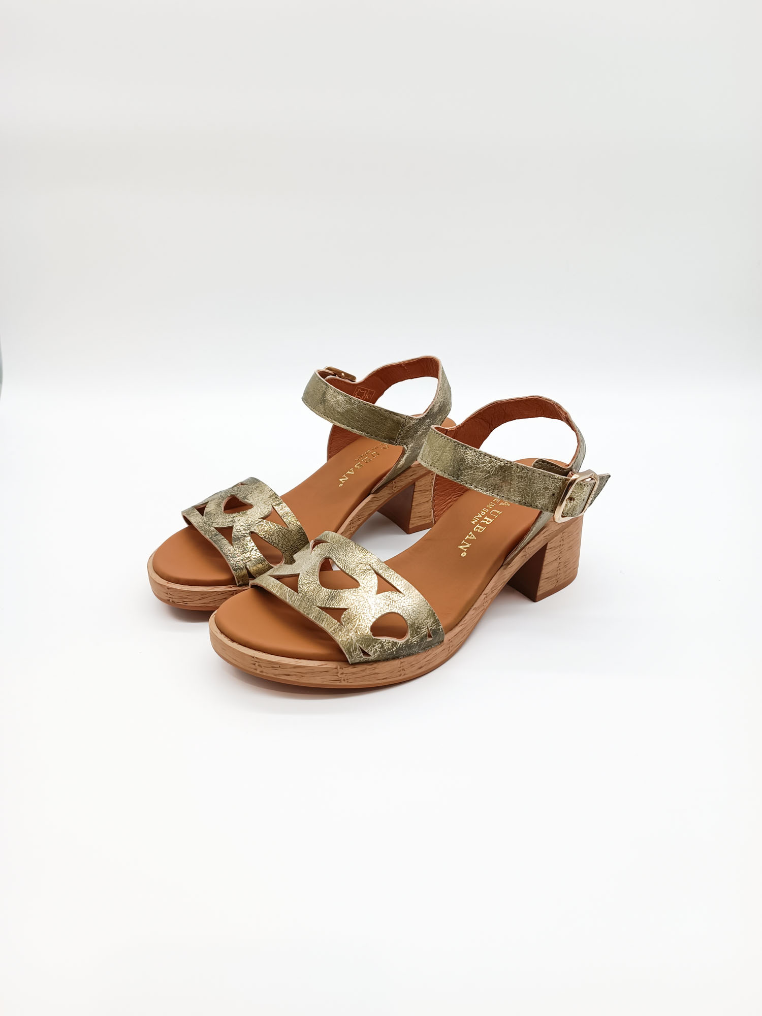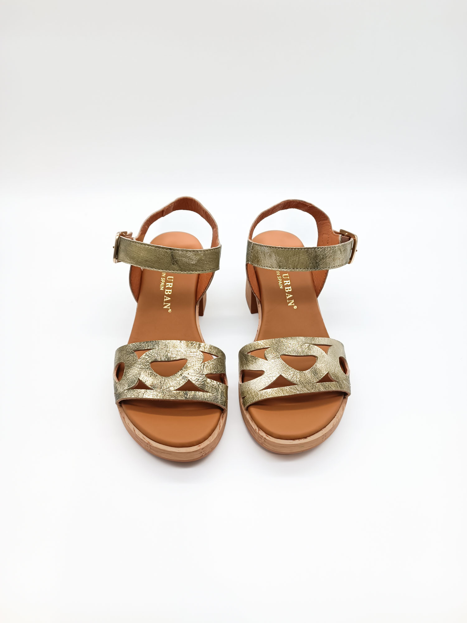 Sandalias de plataforma con tacón bajo. Una sandalia súper cómoda y estilosa con original acabado semi metalizado.